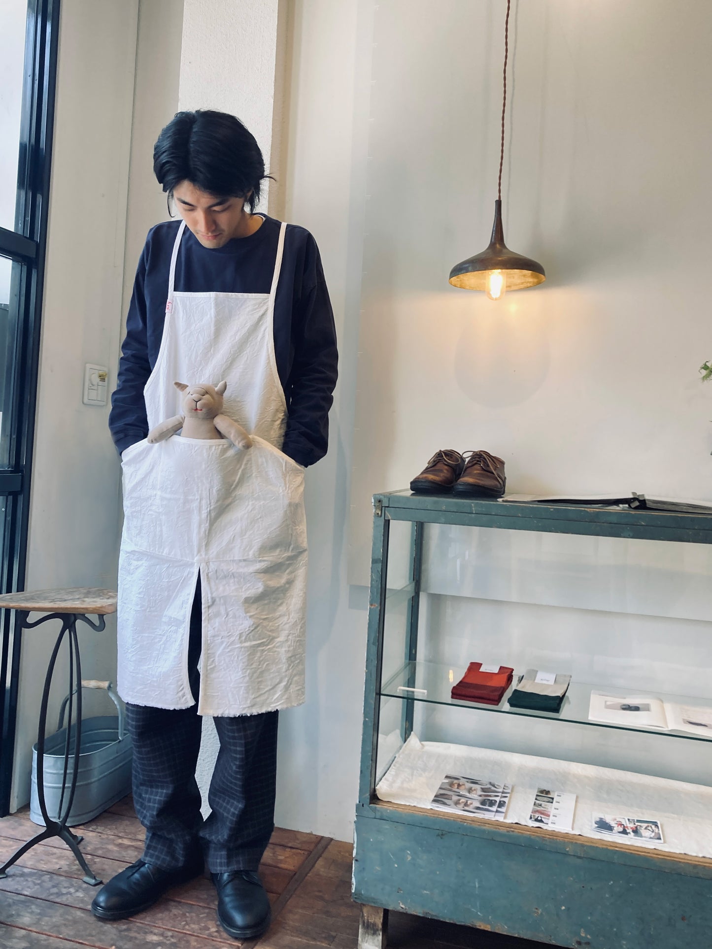 ついついあれこれ入れたい…というスタッフの思いから、まるでカンガルーのようなゆったりとしたポケットをつけました。